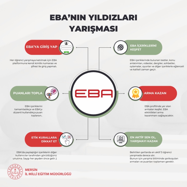 Fatihprojesi kapsamında yer alan Eğitim Bilişim Ağı(EBA)’nın öğretmen ve öğrencilerimiz tarafından etkin bir şekilde kullanımı ve konuyla ilgili farkındalığın artırılması amacıyla düzenlenecek olan EBA'nın Yıldızları yarışmasına ait kılavuz aşağıda yayınlanmıştır. Tüm katılımcılara başarılar dileriz.